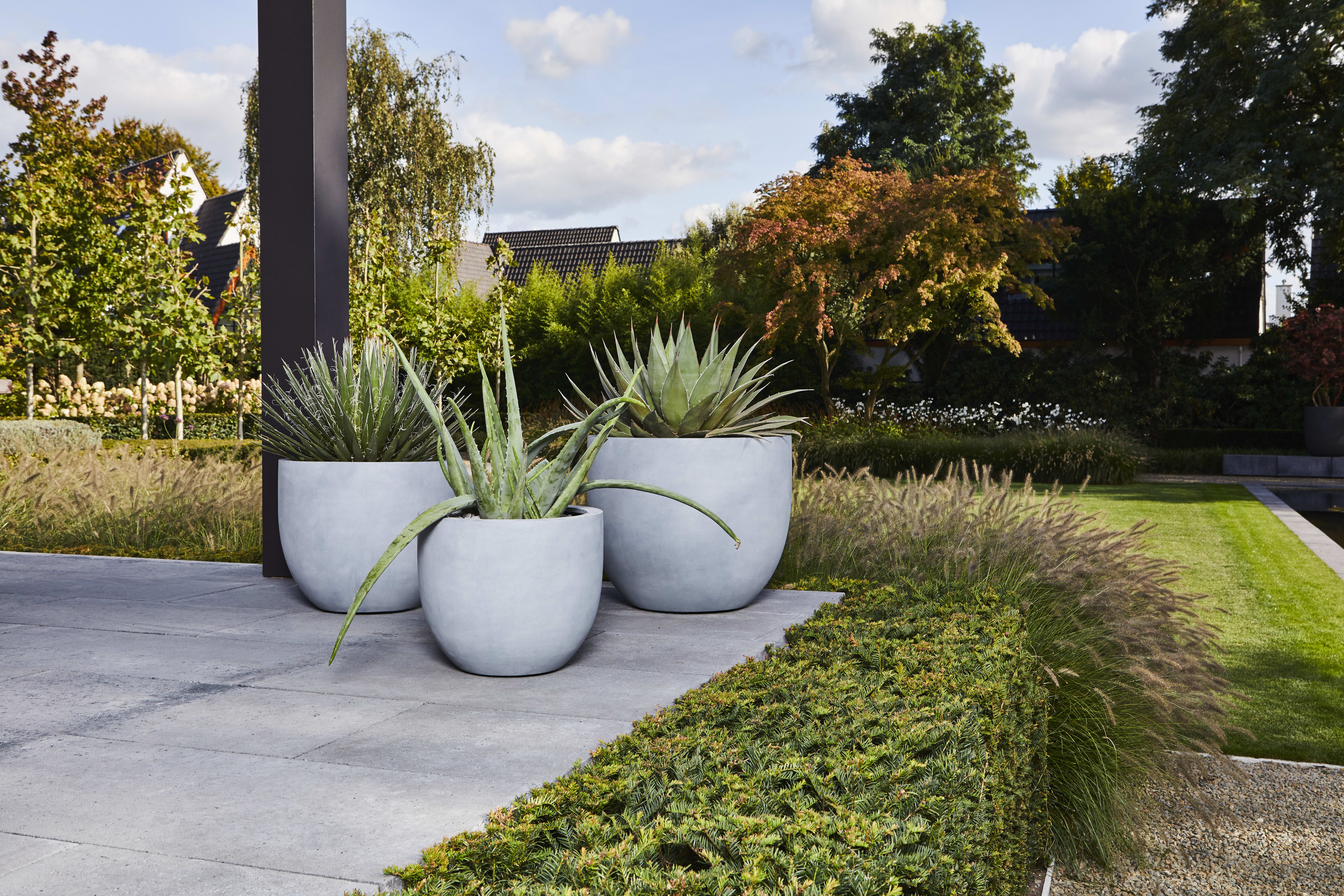 De Argento-serie biedt diverse modellen en formaten in de kleuren Natural Grey, Black en Matt White. Combineer meerdere formaten en kleuren voor een stijlvolle, rustige en krachtige compositie waarin planten en kleine bomen prachtig tot hun recht komen. Zo is de Argento New Egg Pot een praktische en esthetisch sterke keuze voor uiteenlopende ruimtes.