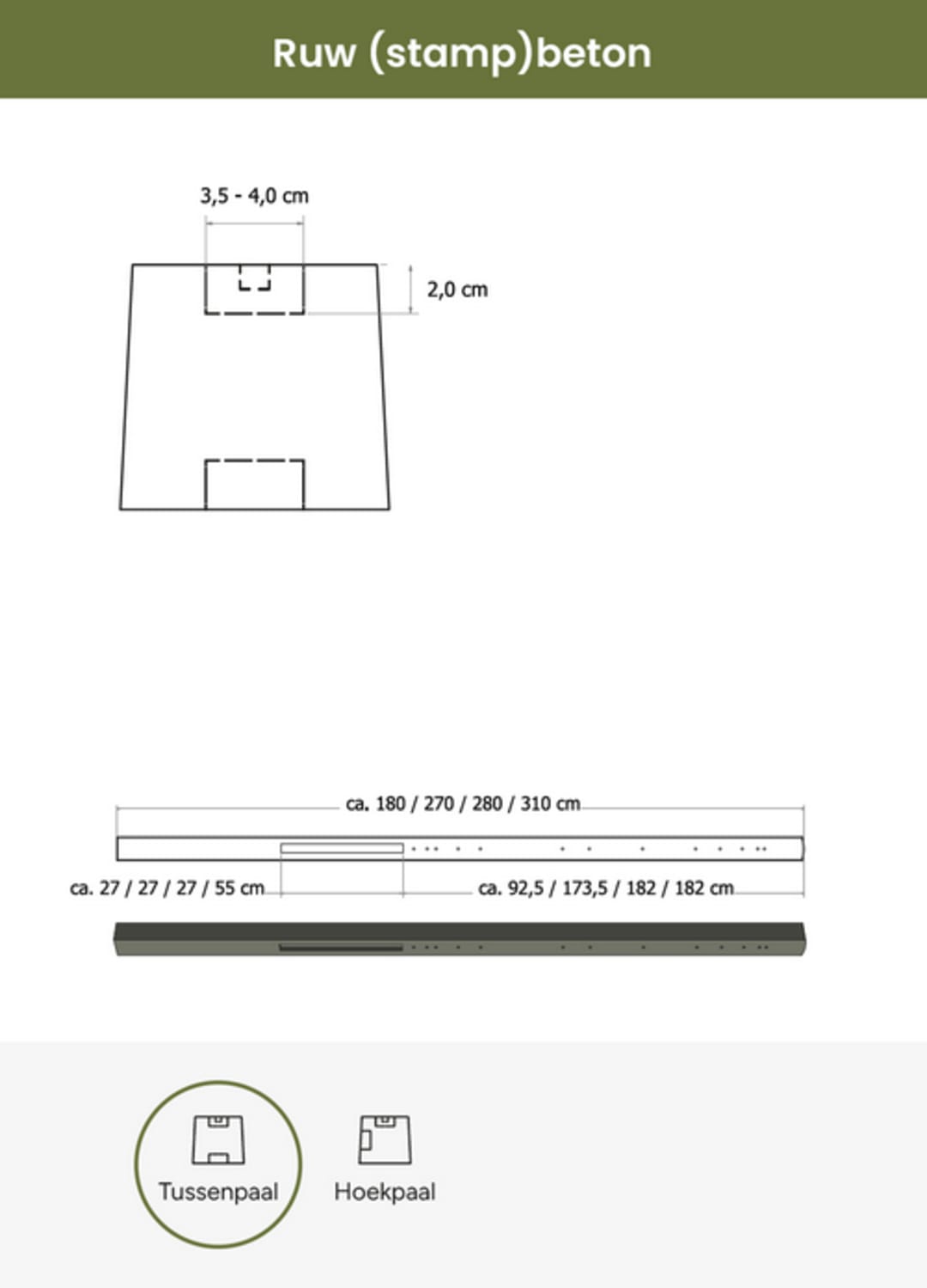 Betonpaal van stampbeton t.b.v. rechtschermen 180 cm hoog