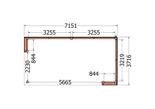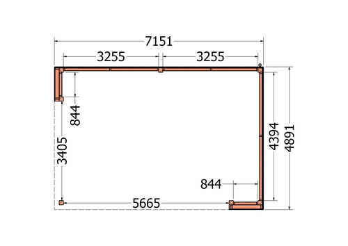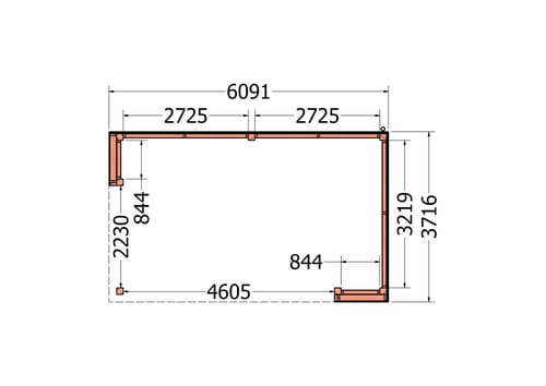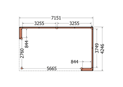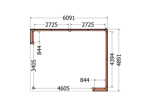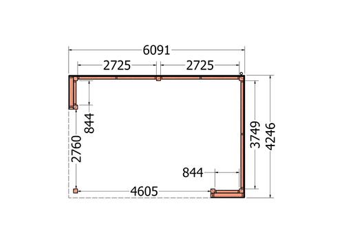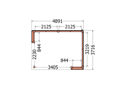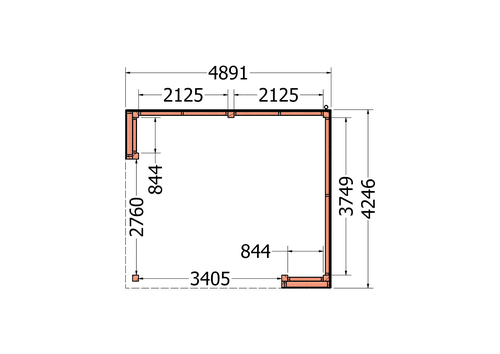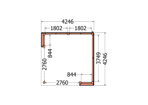 Buitenverblijf Capri 4250x3750x2550 mm (bxdxh) model rechts alleen constructie