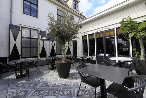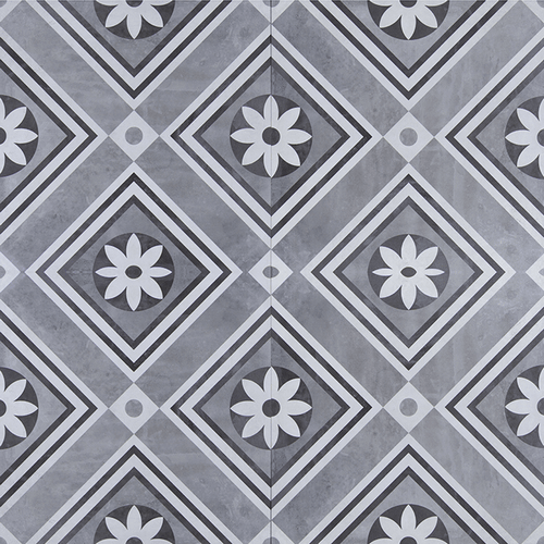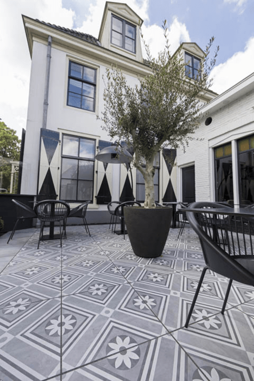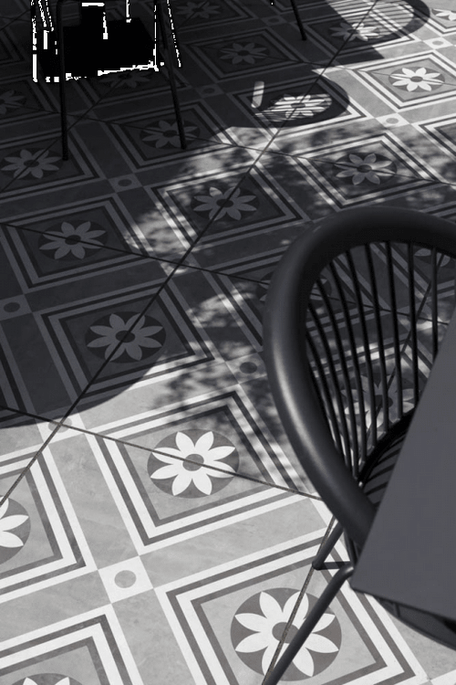 GeoCeramica Concreet Flower Decorate keramische tuintegel met subtiel bloemmotief voor een uniek terras of tuinpad