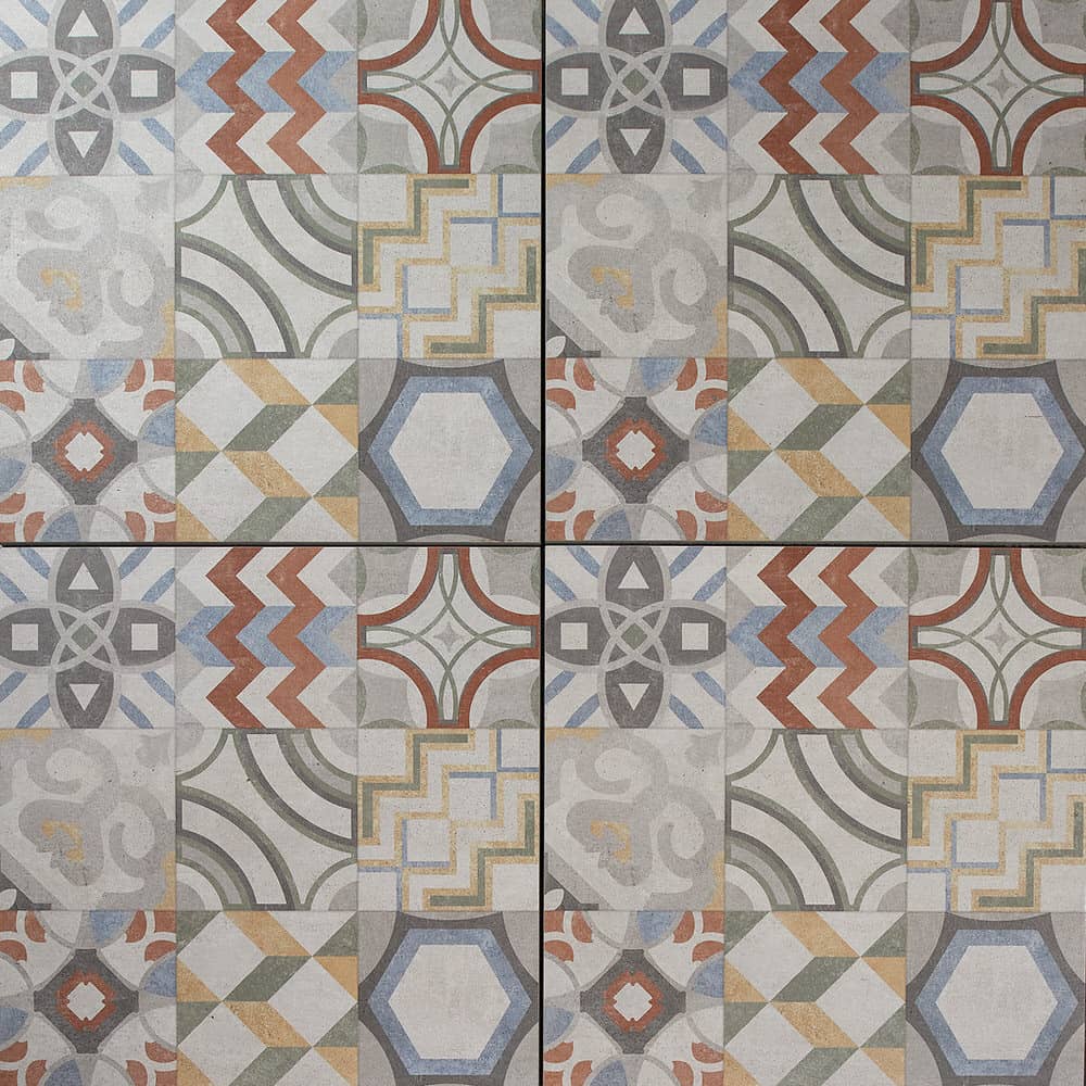 GeoCeramica Porto Mix keramische tegel met gemêleerde kleuren, geschikt voor unieke terrassen en tuinpaden.