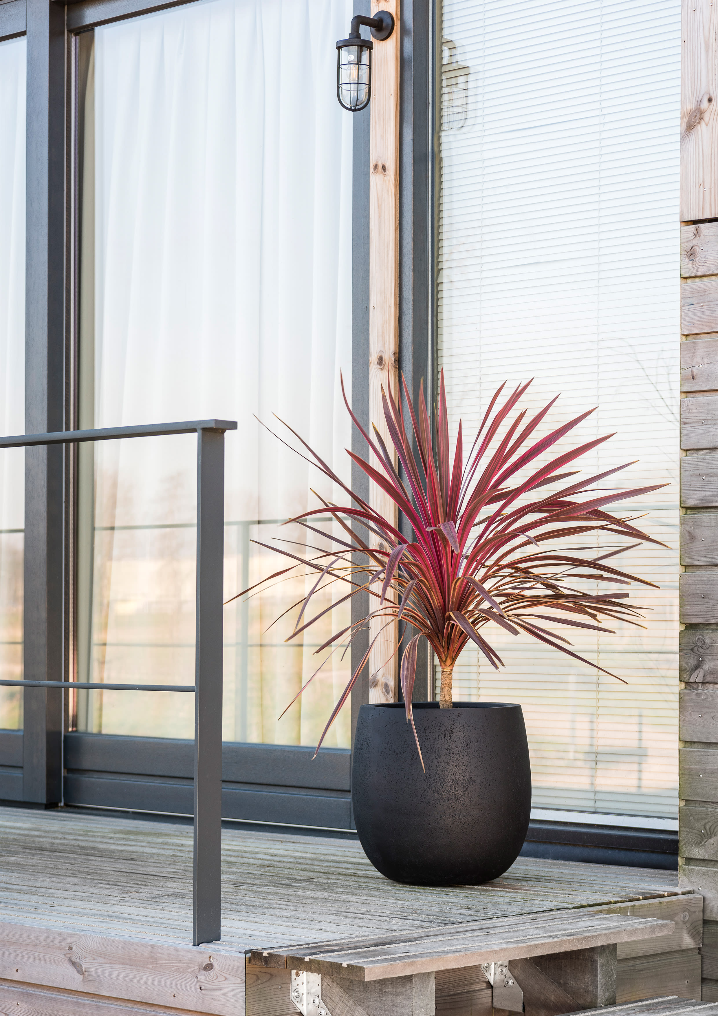 Dankzij het materiaal (polyester versterkt met steenpoeder) heeft de plantenbak een luxe betonuitstraling, terwijl hij lichtgewicht en onderhoudsvriendelijk blijft. Daarnaast is de Grigio Balloon weerbestendig, UV-bestendig en vorstbestendig, waardoor hij het hele jaar buiten kan staan.
