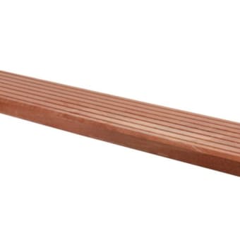 1 zijde met 2 v-groeven, 1 zijde glad. (Minimale duurzaamheidklasse 2.) U kunt, in bijvoorbeeld uw tuinverblijf, de terrasplanken ook met de gladde kant naar boven leggen. Daarmee verkrijgt u de uitstraling van een houten parketvloer.