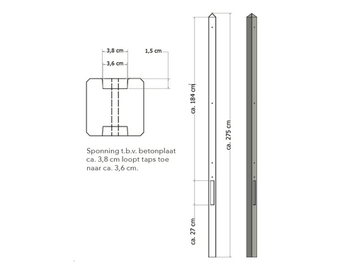 Lichtgewicht Betonpaal Met diamantkop Tussenpaal Ongecoat Grijs