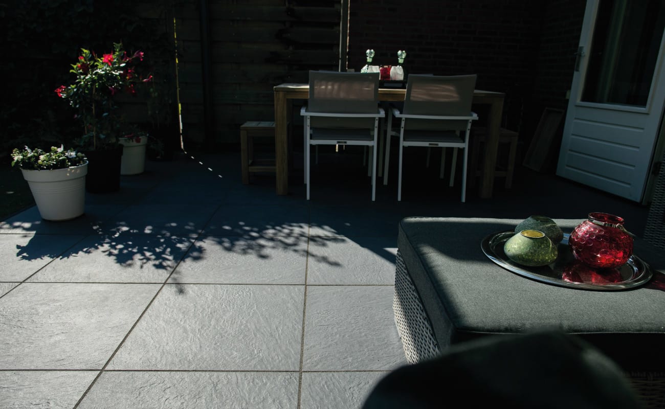 Baltramica keramiek tegel Black Slate: elegante leisteenlook voor een luxe terras.