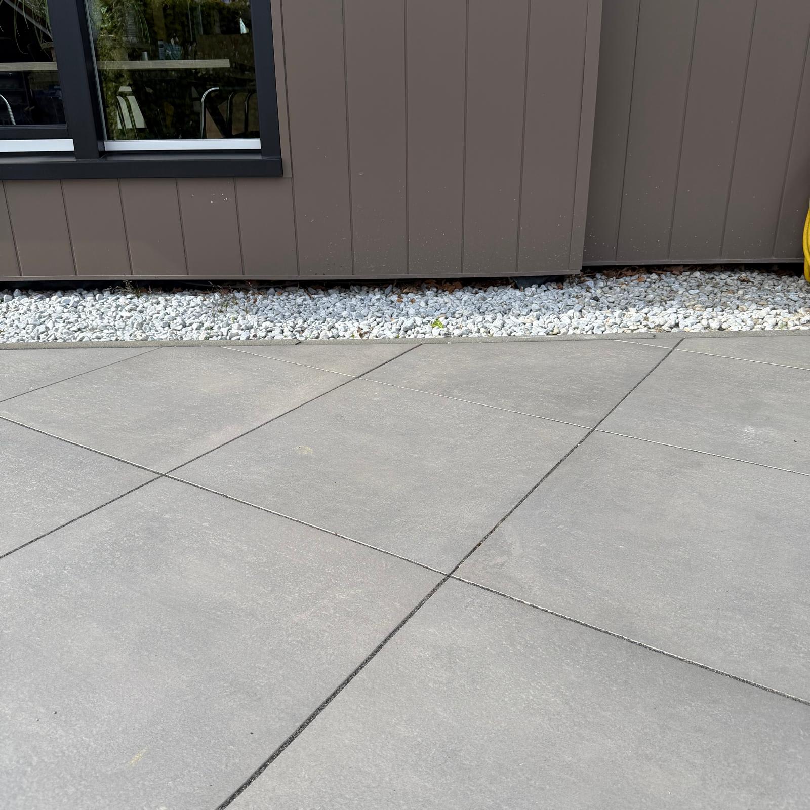 De kleur Graphite kenmerkt zich door een diepe grafiet tint met antraciete nuances. Deze donkere kleur geeft het terras een moderne en luxe uitstraling en vormt een sterk contrast met groen in de tuin of lichtere elementen. Hierdoor is de tegel zeer geschikt voor eigentijdse tuinontwerpen en strakke buitenruimtes.