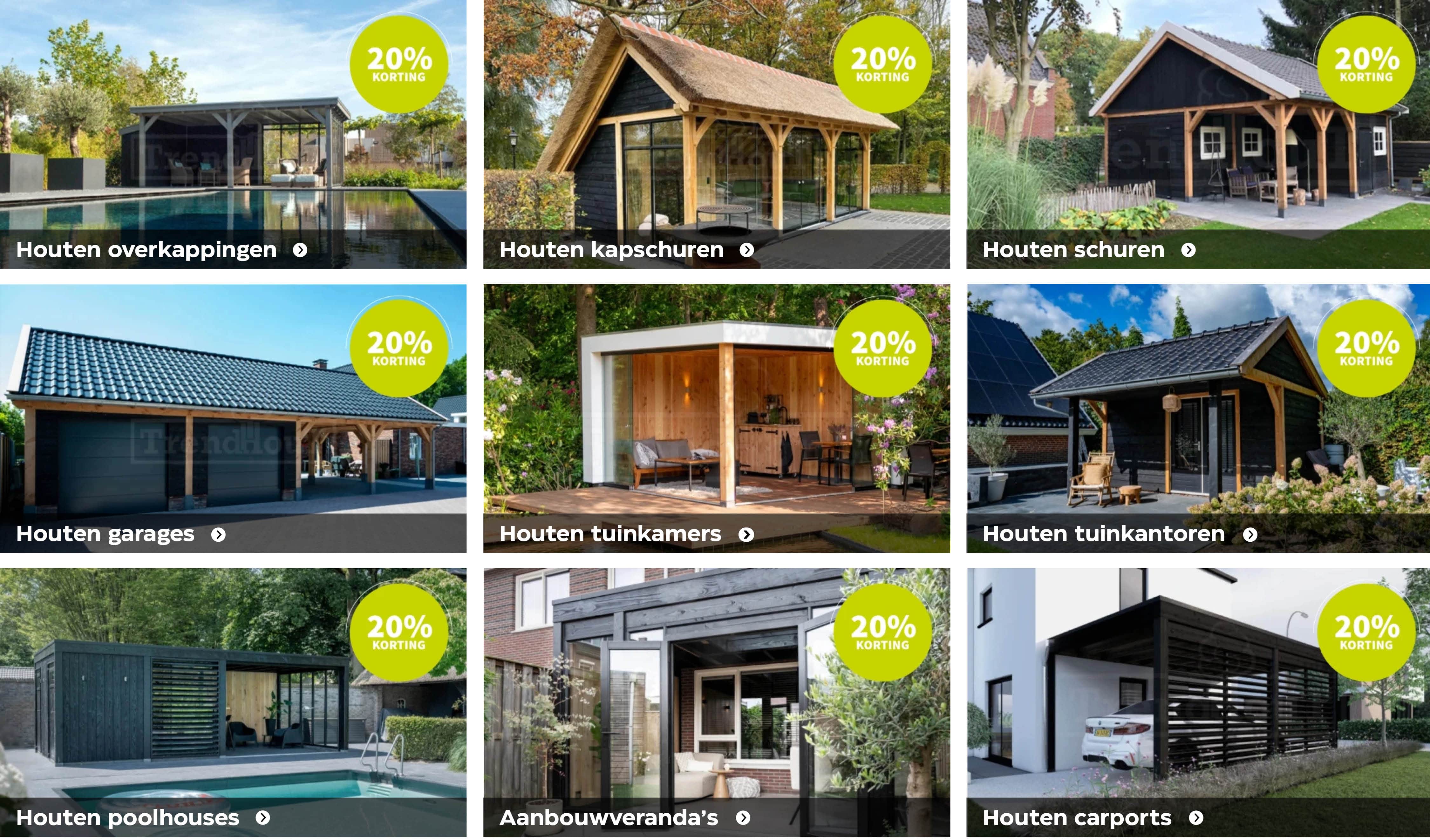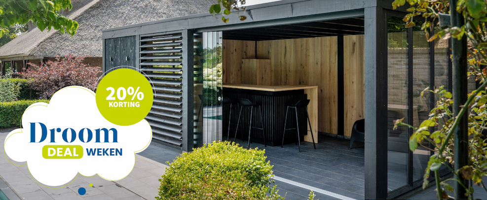 Grijp nú je kans! Tijdens de DroomDealWeken krijg je 20 % korting op alle complete buitenverblijven van Trendhout.