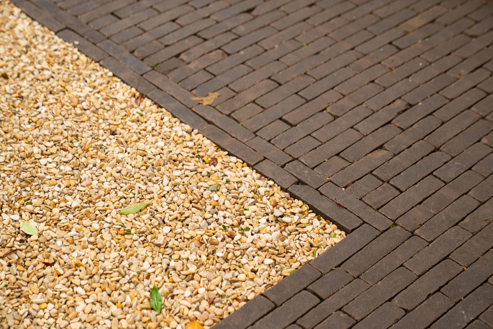 Twee kleuren Oudhollands + Alpen grind + rood-bruine klinkers