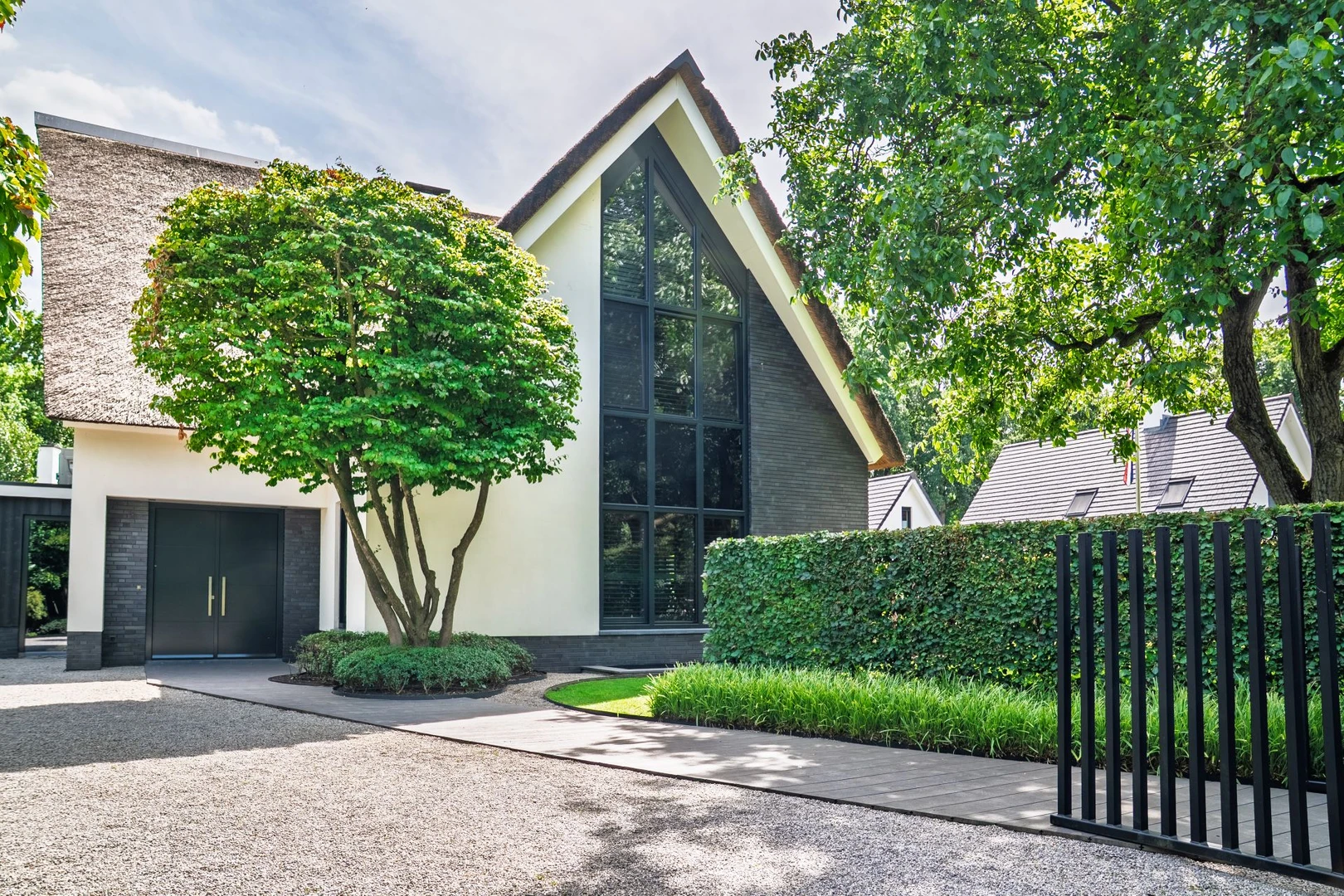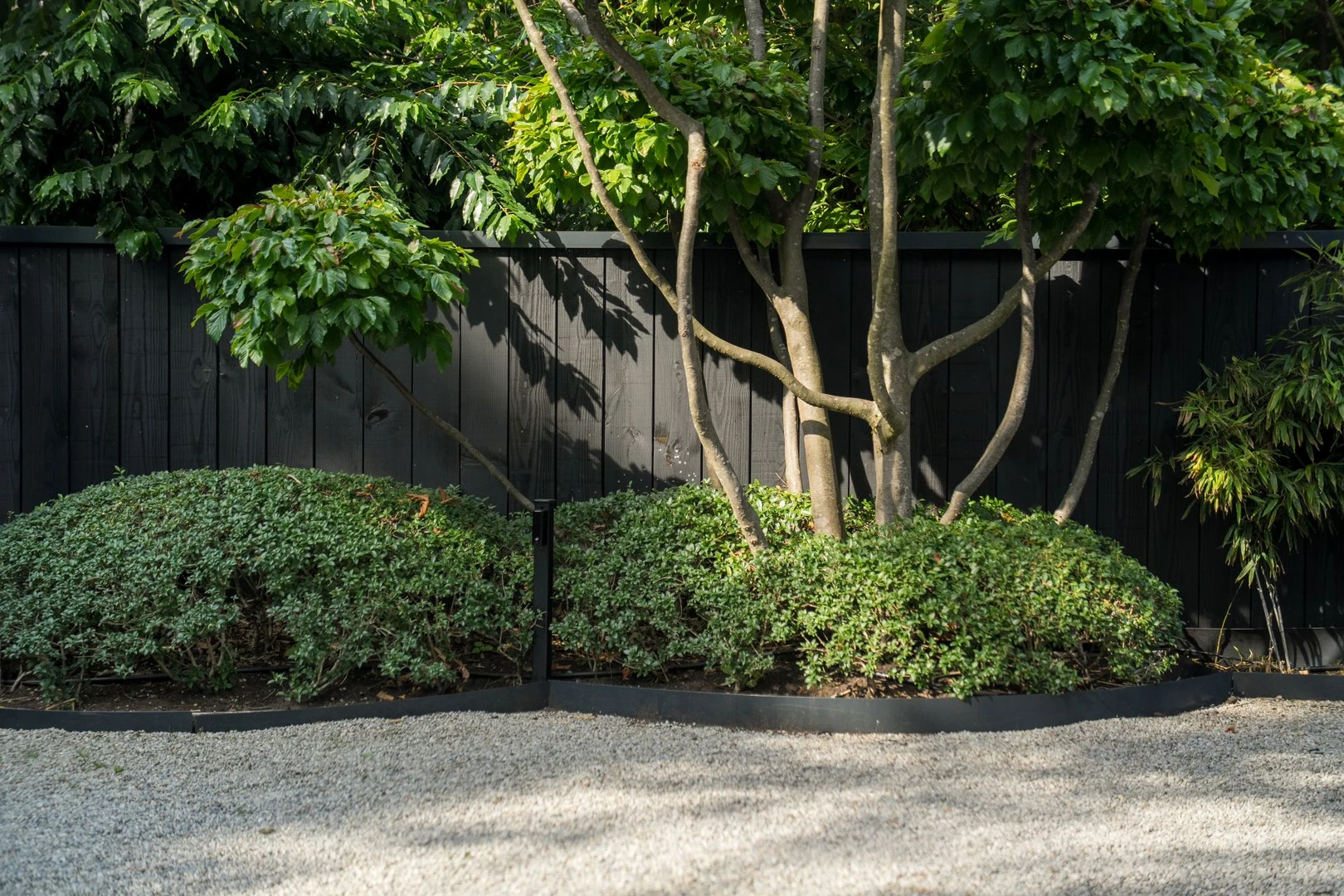 Er is gebruikgemaakt van diverse materialen die zorgen voor een rijke en afwisselende uitstraling. Zo vind je er composiet vlonderplanken, siergrind op de oprit en zijn de hoogteverschillen in de tuin opgevangen met trapreden.