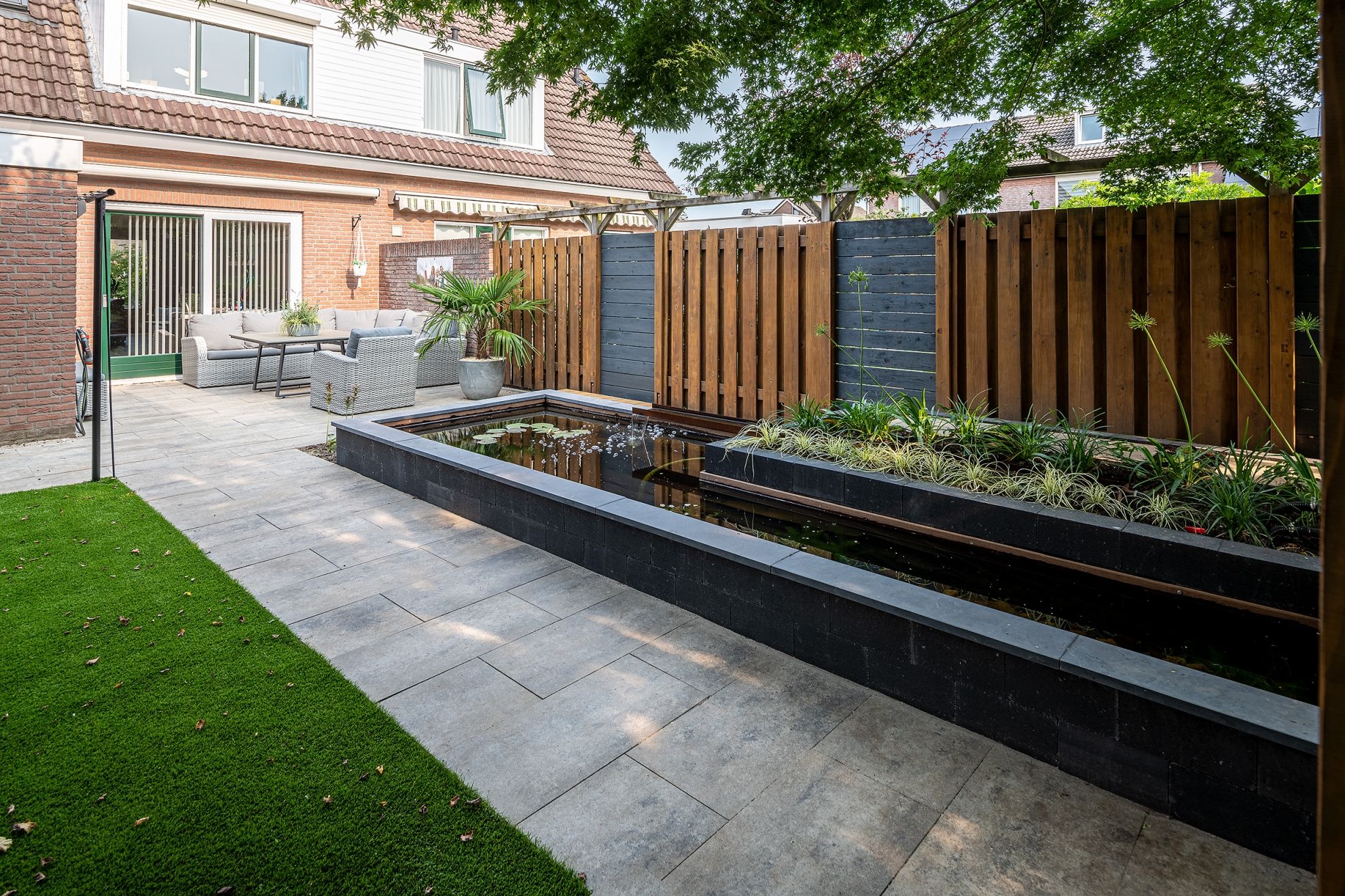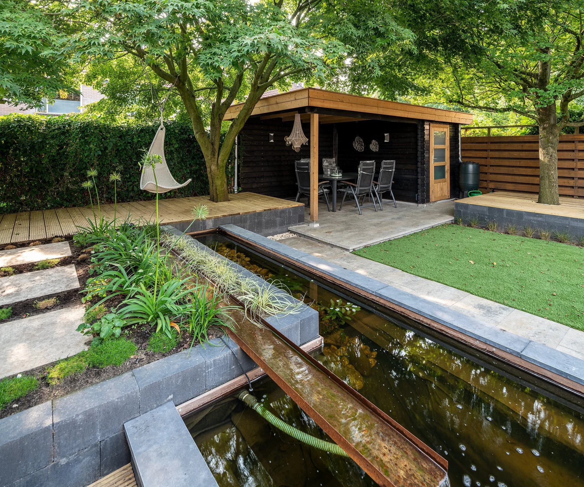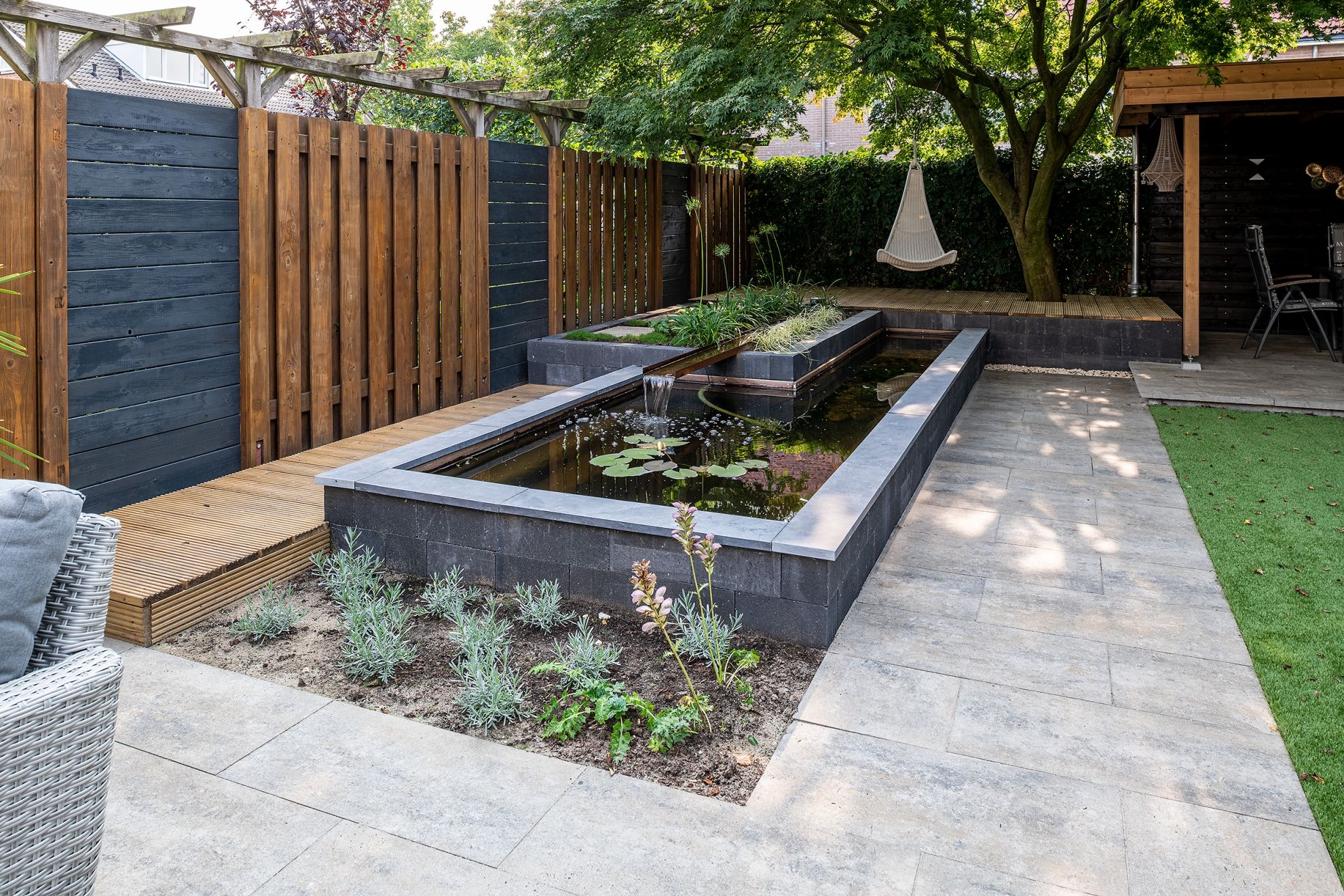 Moderne achtertuin met vijver met cortenstalen elementenVind jouw verkooppuntModerne achtertuin met vijver met cortenstalen elementen.De tuin is gerealiseerd door Stokvis Groentechniek. 4 afbeeldingen1 / 0open in new windowsluitenVorige afbeeldingVolgende afbeelding