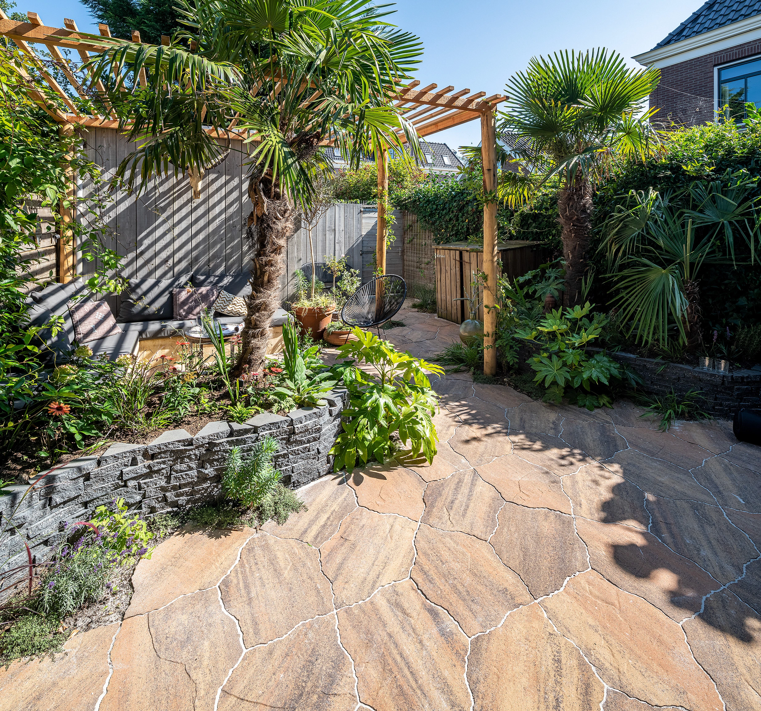 De tegels uit het terras & trends assortiment dragen in mijn tuin heel erg bij tot de gezellige sfeer en de vormen die ik mooi vind, ben er zo blij mee!